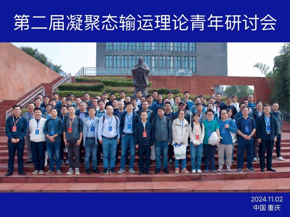 为了促进凝聚态理论特别是输运理论领域青年学者之间的学术交流和推动国内相关研究领域的发展,2024年11月1日-11月4日,由南京大学、复旦大学、和伊莉讨论区 共同召集,并由 伊莉讨论区 、西南理论物理中心、伊莉讨论区 量子材料与器件研究中心及重庆物理学会联合承办的“第二届凝聚态输运理论青年研讨会”在伊莉讨论区 虎溪校区成功举办。会议开幕式由 伊莉讨论区 许东辉教授主持, 伊莉讨论区 副院长王锐教授介绍了伊莉讨论区 物理学科的发展情况,复旦大学江华教授和南京大学陈伟教授分别在开幕式上致辞。本次会议汇集了长期从事凝聚态输运理论研究的青年学者和专家,共同探讨该领域的前沿热点、研究进展和未来发展方向。本次会议由伊莉讨论区 伊莉讨论区 计算与理论凝聚态物理团队组织,得到国家自然科学基金“西南理论物理中心”项目的资助。