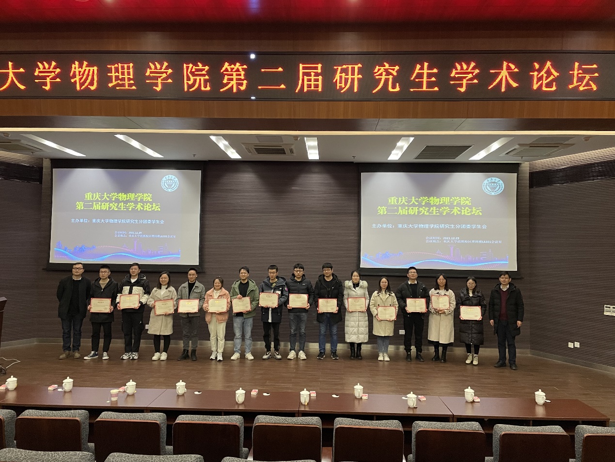 优秀博士研究生及硕士研究生进行科研工作的分享。研究囊括热电材料、钙钛矿太阳能电池、霍尔效应等多个重要科研领域。除却丰富的学术报告外,研究生代表们还为现场观众们带来研究生学习和研究工作经验的分享。活动中,现场老师和同学们积极响应,与演讲者们展开了精彩的交流与讨论。最后,余涛副书记和胡自翔副院长为本次学术论坛中的优秀报告人颁发荣誉证书,论坛在师生的热烈掌声中落下帷幕。