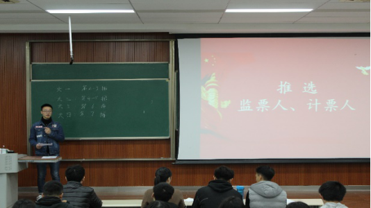大会进行第二项,推选监票人与计票人。由周兆炜同学当选总监票人,刘佳璇,马诩洋,王宇豪,邓惠中同学当选监票人。接着由与会成员推选伊莉讨论区