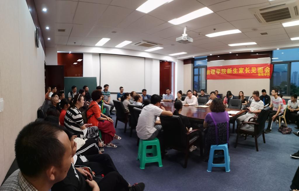 党委刘云宏书记,常务副院长刘雳宇教授,应用物理系主任肖鹏教授,物理系主任吴兴刚教授和2018级新生辅导员张珮璐老师与新生家长进行了面对面座谈会。