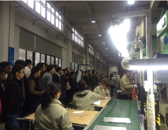 重庆大泰电子科技有限公司是台湾大煜集团在重庆投资的全资子公司,公司主要从事各国际品牌电子数码产品、笔记本型电脑和手机等的金属外壳制造。公司的工作人员热情的接待了同学们,并且详细地向同学们介绍了电子产品金属外壳的制作工艺及流程,精密的工艺和复杂的流程令同学们十分惊讶。随后,在工作人员的带领下,同学们参观了公司的生产车间,了解实际的生产工序和流程。在参观中,同学们仔细观察,积极提问,工作人员也对同学们的问题进行了细致的回答。