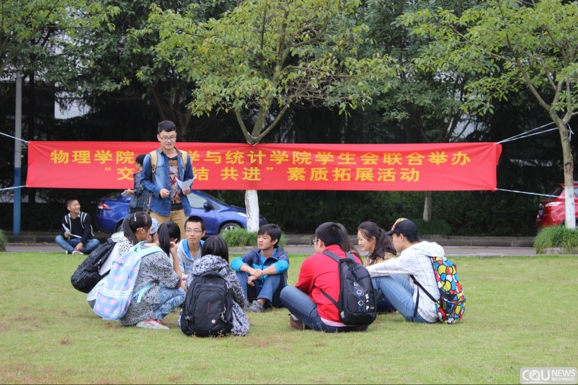 、数学与统计学院团委学生会联合举办的“交流、 团结 、共进”素质拓展活动拉开帷幕。两个学院团委学生会的100多名干事以小组的形式活跃在此次活动中,更有各部门部长和主席团代表担任评委,全程跟踪。大一的干事们从未参加过素质拓展活动,因此大家都怀着激动的心情迫不及待地去揭开素拓神秘的面纱。