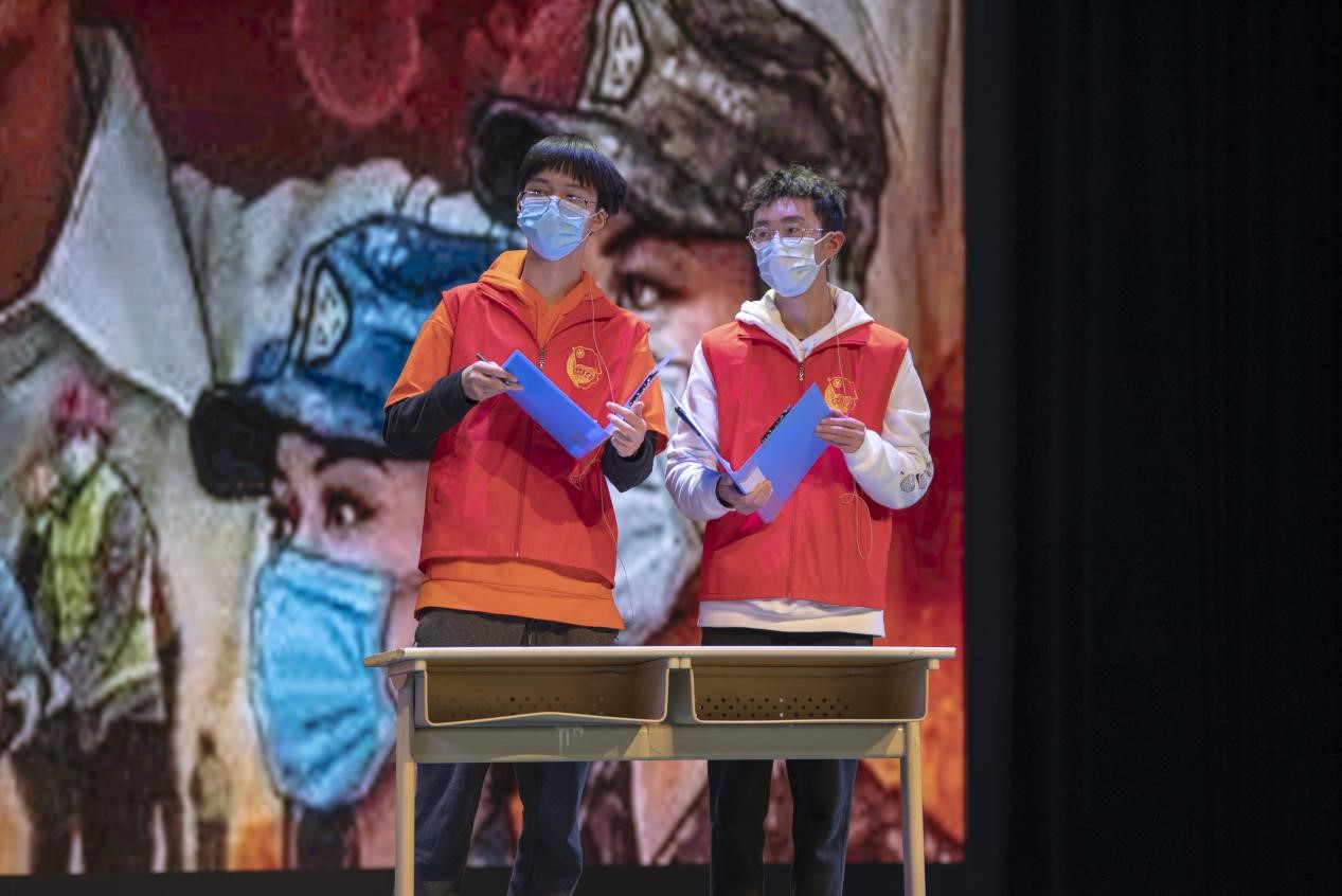 由2020级四班的同学代表们带来的短剧《不平凡的平凡人》,演绎了在疫情期间故事。自愿站岗的志愿者们,舍身奔赴前线的医疗工作者们,还有家中独自等待孩子归来的老父亲。身为平凡人,面对新冠疫情,却绽放出了不平凡的光芒。