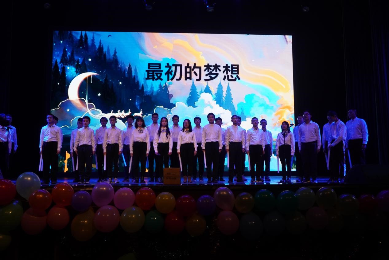 最后是2020级强基班的同学带来的大合唱《最初的梦想》,唱出了他们的坚持,他们的激情,他们的信念,他们的梦想。在苦苦追逐的途中,一颗永恒不灭的坚定的心是乘风破浪的帆,最后一定会带领着人们抵达最初的梦想。