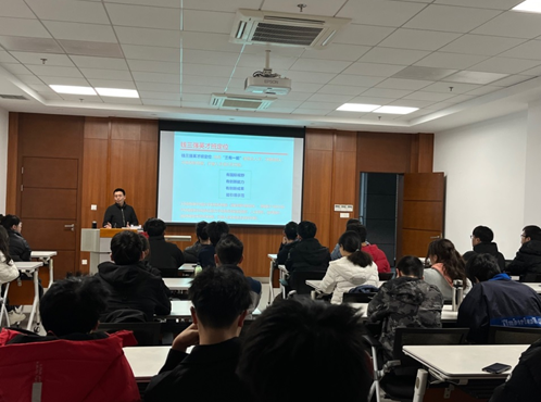 甘老师首先介绍了钱三强英才班的由来,为了促进高校与研究所之间的强强联合,实现优势资源共享,推动学科发展与融合,学院和中国科学院高能物理研究所决定合作举办“钱三强英才班”,培养“三有一能”的拔尖人才,不断刷新人才培养新高度,打破人才成长天花板。然后分享了前几届钱三强班级优秀学生的事迹,鼓励同学们向学长学姐们看齐,灵活运用物理思维解决实际问题,成为驾驭和适应未来的创新型人才。最后,甘老师提到钱三强英才班存在的问题,针对问题如何进行改进,希望同学们加入钱三强英才班能够不断激励自己,在本科阶段获得令自己满意的答卷。