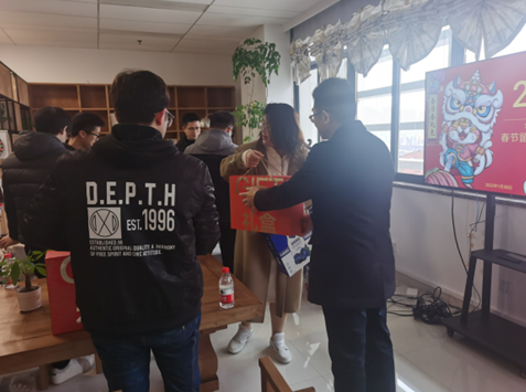 最后,参会的领导和老师向大家发放了年货礼包,并祝愿同学们新年新气象,在新的一年里学业有成、生活愉快。同学们对学院的关怀表示感激,也感受到来自学校和学院温暖的关怀,相信这会是一个难忘的假期。