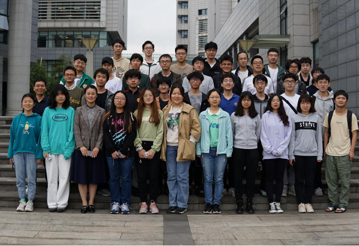 结束前,2020级钱三强英才班的同学们和周老师们以及班主任甘老师一起在理科楼前合影留念。