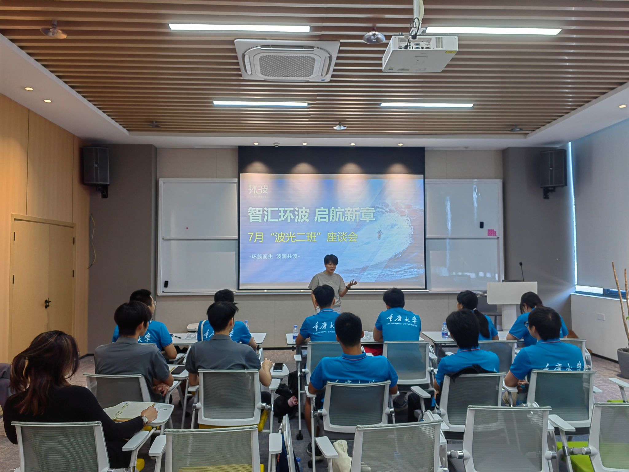 7月16日,环波公司对实践团成员进行了全面的入职培训。培训内容包括座谈会、公司主要业务和发展战略的介绍、工作制度的解读以及工业工程和精益生产的重要概念及应用。CIO孙荣芸分享了她的职业经历,介绍了深圳的职场文化,实践团成员也进行了自我介绍。后续,公司将根据每位成员的特点分配实习岗位。