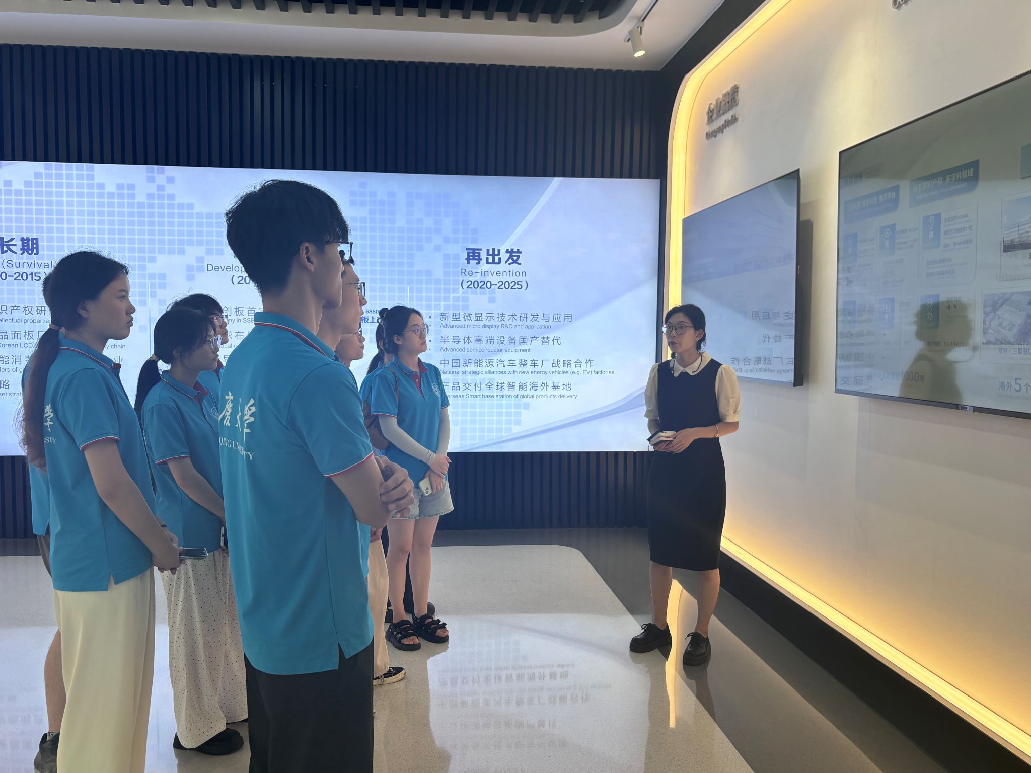 “领‘物’未来,‘理’行天下”实践团来到苏州华兴源创科技股份有限公司进行参观学习,团队师生踏进展厅、研发车间和光电实验室,近距离感受了产品从研发到生产再到测试的全过程,深入了解企业设备的性能、用途和市场前景。