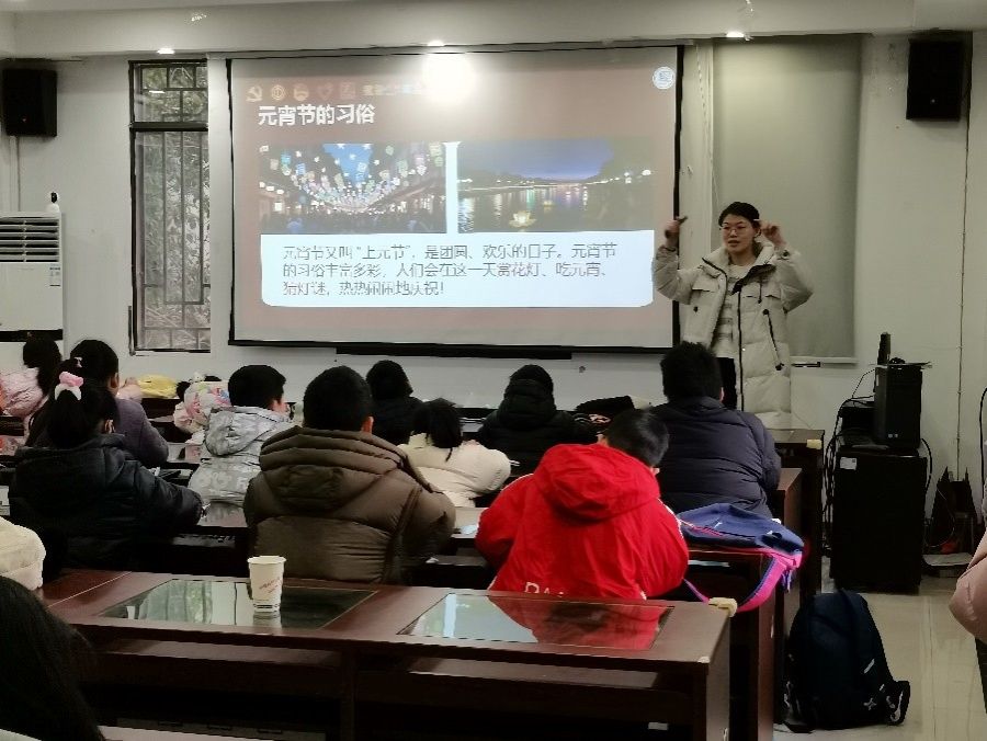 实践团成员向小朋友们讲解元宵节文化