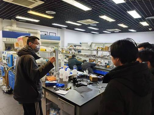 在奚伊老师课题组纳米摩擦发电实验室,杨乾玺同学先简要梳理了摩擦纳米发电与能量采集方向的基础概念,再结合典型器件形态与装置构成进行说明,帮助同学们从“实验装置—应用需求”的角度理解相关研究内容。