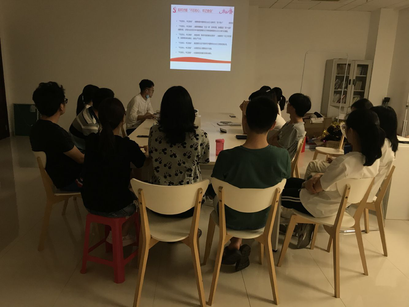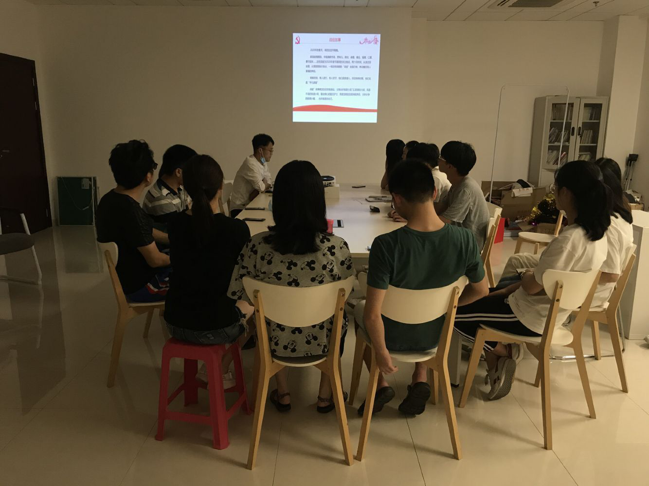 党支部书记张莹总结了今年疫情对大家的影响,让大家讨论了我们是怎么样去配合国家一起预防这次疫情,也为大家讲解了一些发生在她身边的战疫故事。