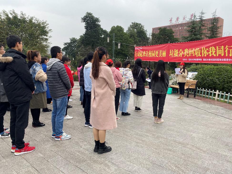 虎溪校区物业服务中心的老师进行垃圾分类知识讲解,并实物演示,让大家进一步明白可回收垃圾、厨房垃圾、有害垃圾和其他垃圾的分类。然后,学生与物业员工一起进行竞赛模式的垃圾分类小游戏。以游戏形式掌握具体垃圾的分类。大家都表现出极高的热情。最后,学生与员工联合,进行校园垃圾清理,并将垃圾带到指定地点进行分类。活动结束后,大家共同打扫场地并分类回收垃圾。