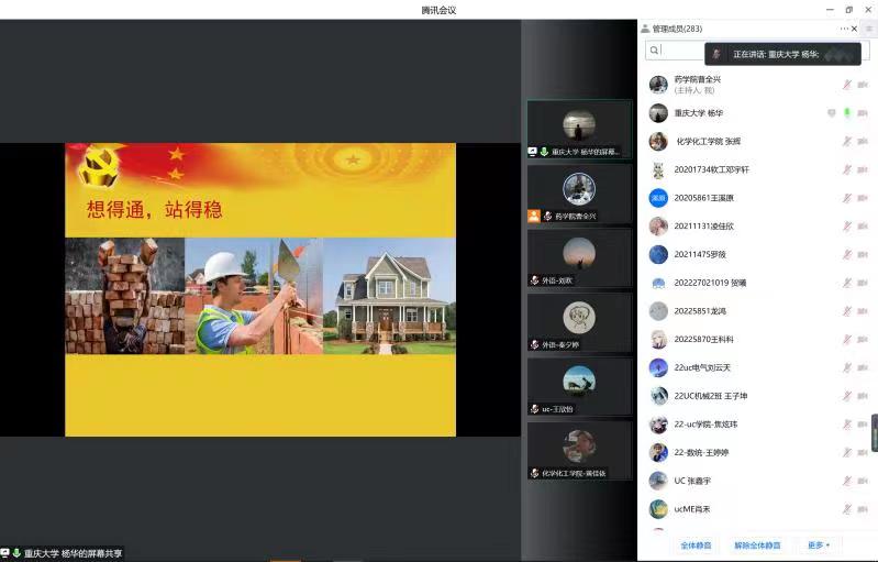 党委、外国语学院党委、数学与统计学院党委、大数据软件学院党委等7个二级党组织联合组建的虎溪校区联合党校组织了入党积极分子培训班。本期培训成员共计277人参加,课程第一讲主题为“学懂基本理论,弄通科学方法”。由于受疫情影响,本次课程通过腾讯会议线上教学。主讲人系伊莉讨论区