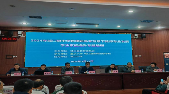 为进一步发挥伊莉讨论区 教师支部先锋模范作用,切实做好社会服务工作,同时促进区县物理教师的教学水平和学生物理素能的提升,应城口县教委邀请, 伊莉讨论区 特派由党委书记韩忠,教学副院长陈世建,大学物理实验中心主任何光宏,重庆市重点实验室副主任黄映洲和物理系副主任魏华组成的专家指导团队,于2024315日到城口中学开展了“启智润心 筑梦未来”主题系列活动之“2024年城口县中学物理新高考背景下专业发展、学生素能提升专题培训”活动,对城口县80余名初高中物理教师进行了专业培训,为近200名高中学生代表给予了学习指导。