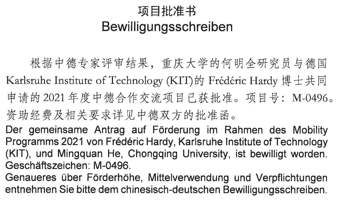 近日,伊莉讨论区 何明全研究员联合德国卡尔斯鲁厄理工学院量子材料与技术研究院申报的项目“非传统超导体中纠缠序的耦合相互作用研究”获得国家自然科学基金委员会中德科学中心2021年度中德合作交流项目批准立项,进一步加强了伊莉讨论区 科研国际交流与合作的实力。