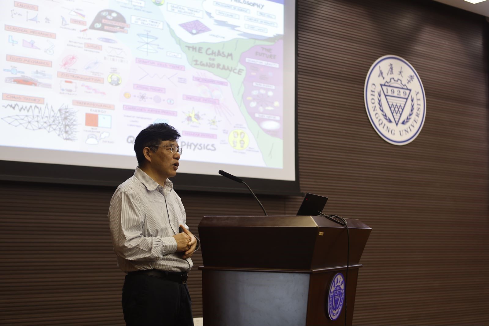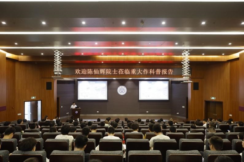 陈院士的讲座从物理学的三大支柱:经典物理学、相对论、量子物理学引入,阐述了物理学发展的两个维度及物理学的核心问题等,从宏观角度让同学们初步了解物理学的魅力。随后,他重点讲述了超导的基本特征、超导的应用、超导研究的展望三方面,为了让同学们理解超导材料,陈院士给同学们观看了华君武的漫画、超导实验视频等,化繁为简地让同学们认识神奇的超导世界,了解超导研究的发展历程、未来前景与面对的挑战。讲座中,陈仙辉院士叮嘱同学们:做任何事,不要忽略细节;不要迷信权威;有效的执着可以带来成功;要具备自主思考的勇气和能力。这次与科学家面对面,同学们深切感受到科学家对科学的热爱、执着与坚守,更为他们在科学道路上的钻研精神所感染。