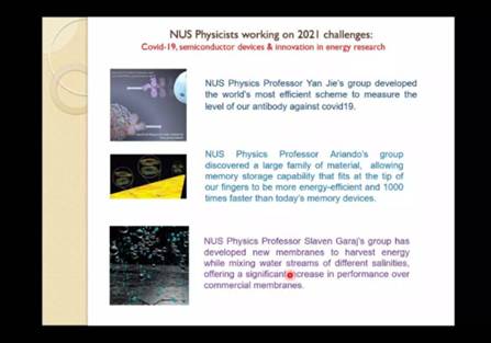 On February 21, 2022, at 19:00, an introductory meeting of Joint Training Program between the School of Physics of Chongqing University and the Department of Physics of National University of Singapore (NUS) was held online to introduce the details of the program and answer questions for the students. The meeting was attended by Jiangbin Gong, Head of NUS Physics Department, Chun Zhang, Professor of NUS Physics Department, Xinggang Wu, Dean of NUS Physics Department, Tao Yu, Deputy Secretary, Zixiang Hu, Vice Dean of NUS Physics Department and interested students of NUS Physics Department.