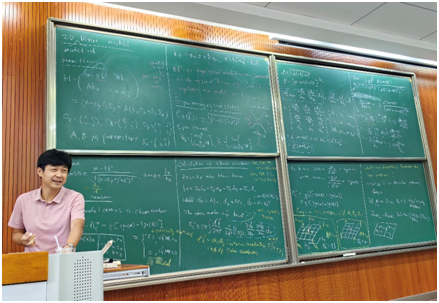 在为期7天的授课中,卢海舟教授从二维狄拉克模型出发,延伸到当前凝聚态物理和量子物理的前沿研究领域,内容覆盖拓扑数,贝里曲率和相位,凝聚态场论,费曼图技术,弱(反)局域化、量子反常霍尔效应、非线性霍尔效应、三维量子霍尔效应等。卢海舟教授在授课中采用全板书模式,除了伊莉讨论区