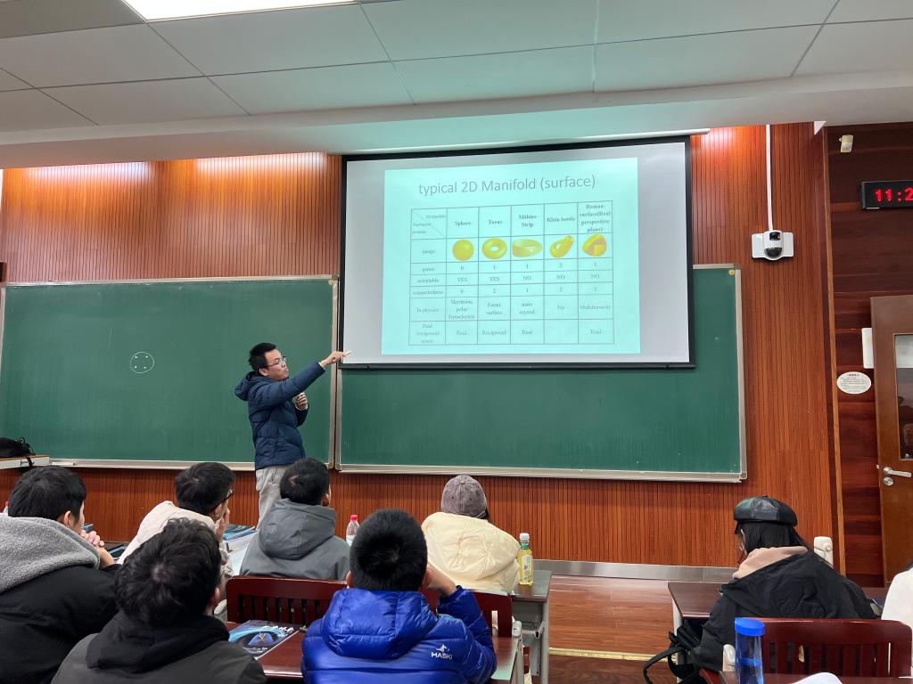 本科阶段的学科建设与发展规划,强调了学院的发展正迎来全新机遇。随后他强调了基础学科尤其是物理学科的重要性,就国家层面而言,它是建设国家、实现科技强国需要基础学科的力量;就学校层面而言,发展基础学科对于建设双一流强校有重大意义。最后就学院的师资概况、科研情况等方面进行了详细介绍。