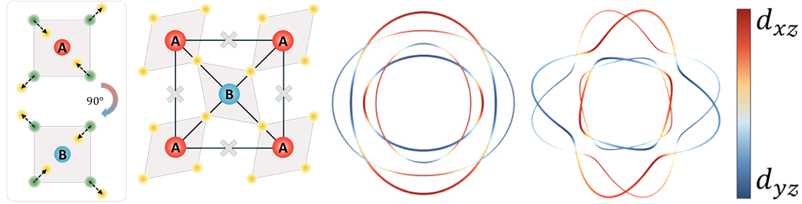图2:自旋-轨道交替磁体晶格示意图,及其动量空间